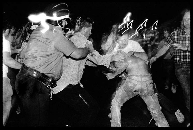 What ensued was a tense standoff, followed by a riot that lasted until 6 A.M. the next morning. Officers blocked off exits to the park and began charging at the crowd. With nowhere to flee the increasingly confrontational scene, several protesters retaliated by throwing bottles at the officers. The police continued to charge the protesters and began beating them with batons, injuring 38 people. Eventually over 100 complaints of police brutality were filed, but no officers were reprimanded.