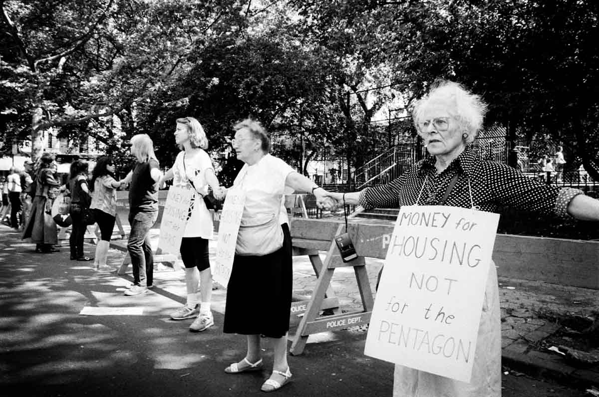 Criminalization of homelessness, such as curfews and the destruction of homeless encampments, continues to be an issue in the East Village and across the city. The city has a long way to go toward effective, non-punitive policy solutions for those experiencing homelessness. However, several long standing neighborhood organizations continue to serve food to those in need. Maryhouse on 55 East 3rd Street and St. Joseph’s House on 36 East 1st Street, both founded by volunteers of The Catholic Worker, serve food to all those in need. As of 2024, activist group Food Not Bombs serves food every Sunday at the southwest corner of Tompkins Square Park, and has done so for several years. The Sixth Street Community Center, a 2024 Village Award winner, operates a bi-weekly emergency food distribution program.