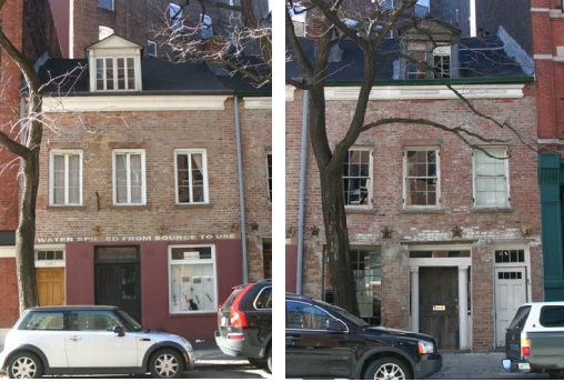 Built circa 1823, these two-and-a-half-story brick buildings are quintessential examples of the Federal style, distinguished by their dormer windows, Flemish bond brickwork, and steeply pitched roofs. While much of their original context has been lost to time and surrounding construction, these two houses endure as tangible links to a formative period in New York City’s growth following the American Revolution.