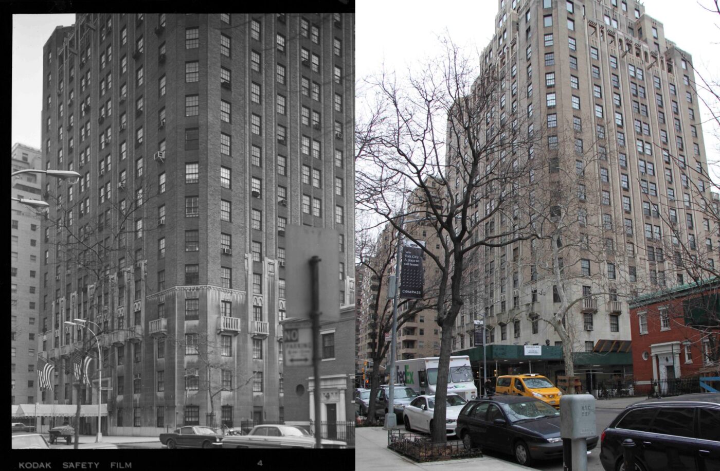 Hit “play” upon entering the map, or drag the timeline manually to at least 1970, and you’ll see that the Greenwich Village Historic District, one of New York’s oldest and largest historic districts, was designated on April 29, 1969. Integral to that district is One Fifth Avenue, among Greenwich Village’s tallest buildings, and a defining landmark visible from many spots in the neighborhood. An historic photograph of the building, alongside the Washington Arch and the Washington Square North Row, was selected to be the map’s representative image for the Greenwich Village Historic District. You can click through to read the designation report for the district, which describes One Fifth Avenue thusly: