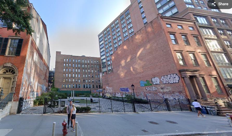 Where several buildings once stood in between the landmarked 1840’s Greek Revivals of Skidmore House and the Merchants House, there now lies a “vest pocket plaza” park, Manuel Plaza. Built on DEP land, the plaza is named in honor of Manuel Gerrit de Reus, Big Manuel, Clyn Manuel, Manuel Sanders, and Manuel Trumpeter. These five Black men were among 28 recipients of land grants in the area earned by people of African descent between 1643 and 1663, many of whom were among the first enslaved Africans brought here by the Dutch West India Company. Manuel Gerrit de Reus owned the land this plaza sits on. Read more about the history of the land and North America’s first free Black settlement.