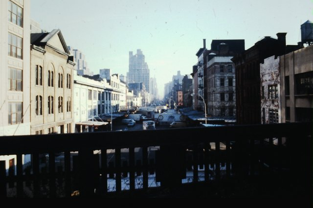 Greenberg would walk Dinky along the vacated train tracks, and found himself inspired by the unique views of both the Hudson River and Manhattan’s side streets—realizing what a quiet refuge the former freight line provided above the city bustle. Consequently, Greenberg envisioned a new future and proposed an elevated park be built upon the structural remains of the abandoned rail line, which he dubbed “the Manhattan Promenade.” This collection includes photos he took and the proposal he submitted to Ruth Wittenberg’s Greenwich Village Historic Preservation Group. To view the full original proposal, with text and map, visit our Preservation History Archive here.