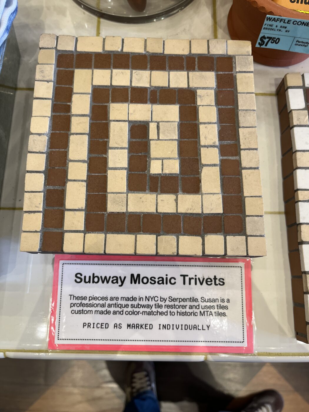 Subway mosaic trivets, far more hygienic than putting your dishes on the subway floor!