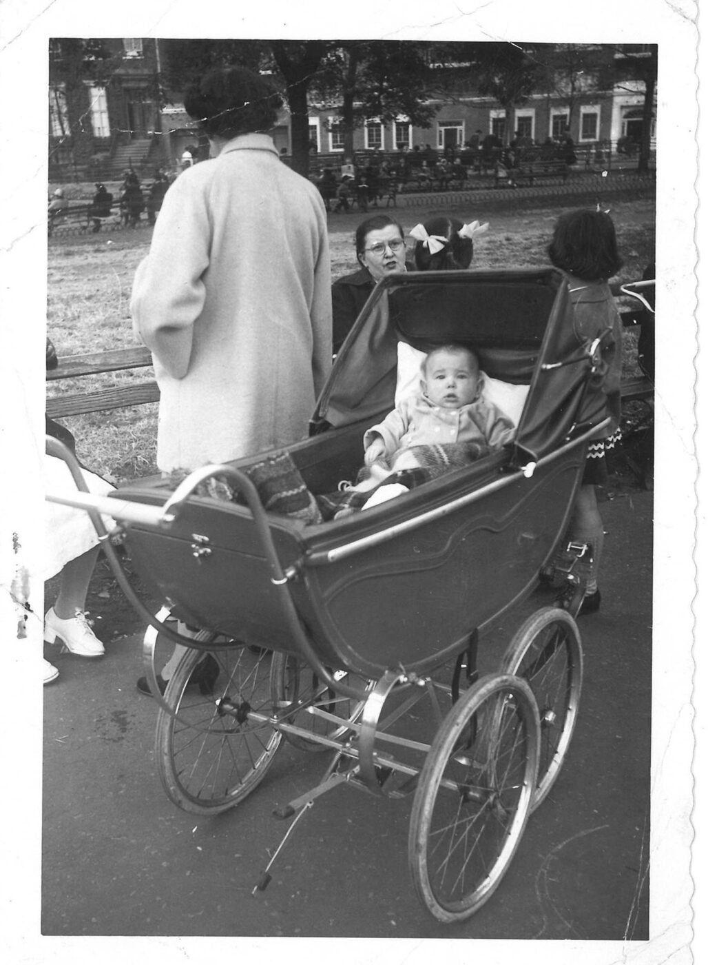 In the earliest photos in the collection, Maia Farish is shown as infant in Washington Square Park, first in a baby carriage, and by the following year she was standing and leaning on the fountain.