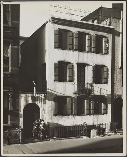 In August 1924, the now obsolete New York Evening Post wrote of Perry Street’s secret, in its regular column entitled “Little Sketches About Town.” Captivated by the article’s description of the quaint wooden buildings and garden, author H. P. Lovecraft took a visit to 93 Perry Street and soon after made it the setting for the end of his story, “He,” where the narrator finds himself “at the entrance of a little black court off Perry Street.”