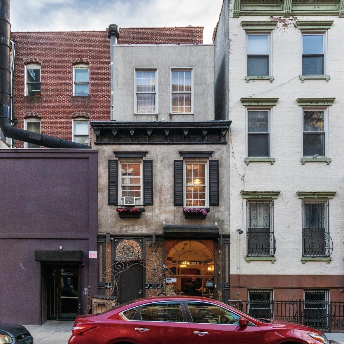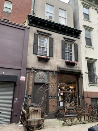 While there’s not much known about the three-story, mixed-use building at 246 East 5th Street, its unique character never fails to catch our eye. It’s speculated that the building was originally built as a carriage house for the dwelling at 85 Second Avenue, but was later separated and given its own lot number. Originally owned by Jacob Finck, the home was constructed in 1882-83 and adheres to an altered neo-Grec style, but has undergone ample renovations and transformations since being built. Most notably, a third story was added to the structure in the late twentieth century, as was a non-historic front gate.