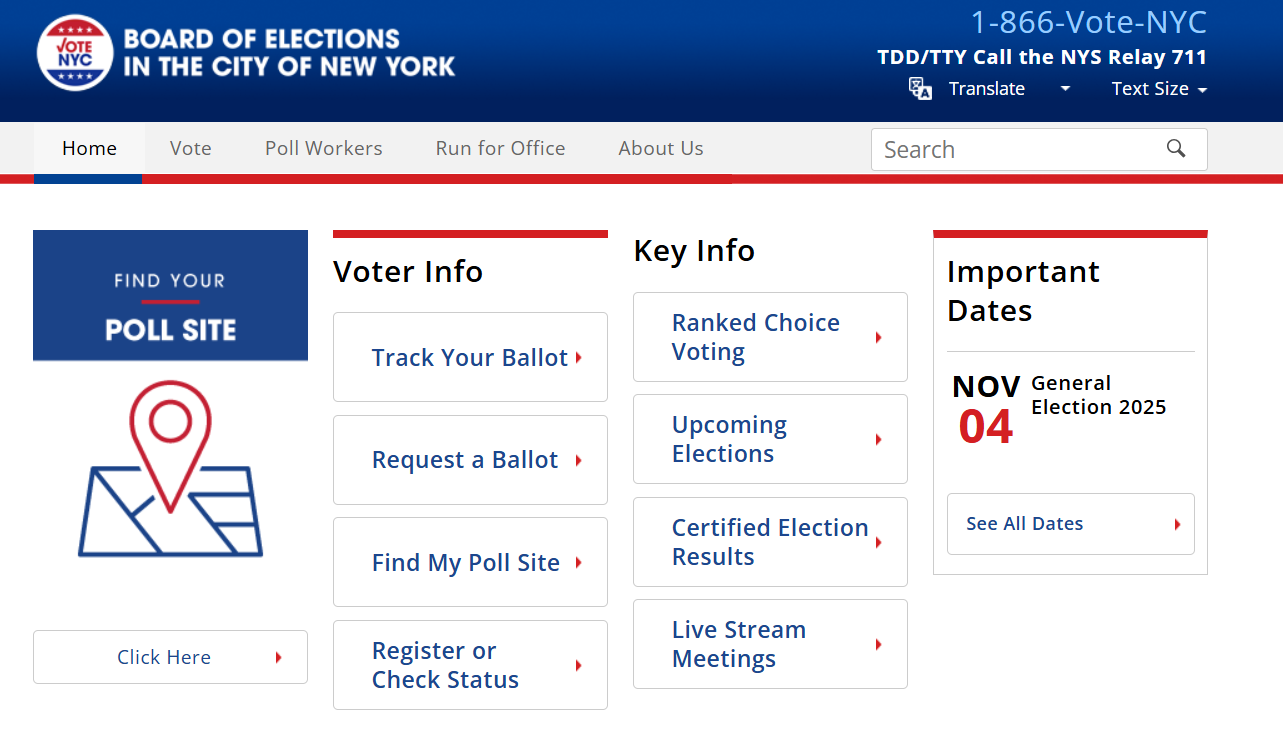 Use the link to the NYC Board of Elections so you can check your district, polling site, and sample ballot.