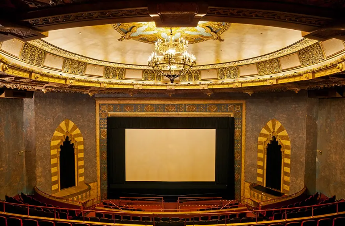 Currently housing Angelika’s Village East cinema, 181-189 Second Avenue was built in 1925 as the Yiddish Art Theater. Funded by Brooklyn lawyer and Jewish community leader Louis Jaffe, the theater was designed as an elaborate, 1,265-seat live theater for the Yiddish Art Theater company, which was directed by Maurice Schwartz. The interior was designed in the Moorish Revival style that was popular in synagogues at the time, and included a forty-foot ornamental ceiling with a spectacular Star of David in the center that is still present today.