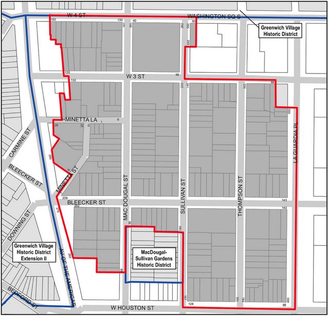 That effort culminated in the creation of three historic districts — the Greenwich Village Historic District Extension II in 2010, the South Village Historic District in 2013, and the Sullivan Thompson Historic District in 2016. The three designations protected about 700 buildings for their historic, architectural, and cultural importance, formally acknowledging the South Village as a distinct and irreplaceable part of New York City’s heritage. The South Village also encompasses the MacDougal–Sullivan Gardens Historic District, which was designated in 1967.