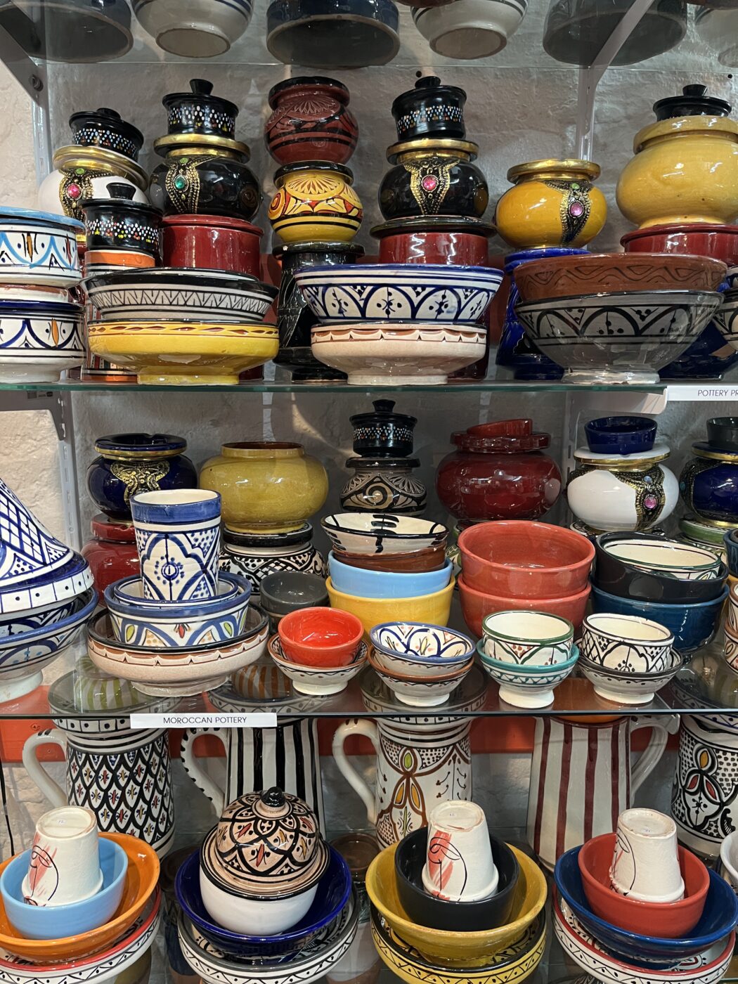 The pottery comes in a variety of styles, depending on the town of origin, and is both eminently functional (how else would you make tagine?) and ornamental, embellished as it is with hand-painted, vibrant-hued geometric and biomorphic patterns.