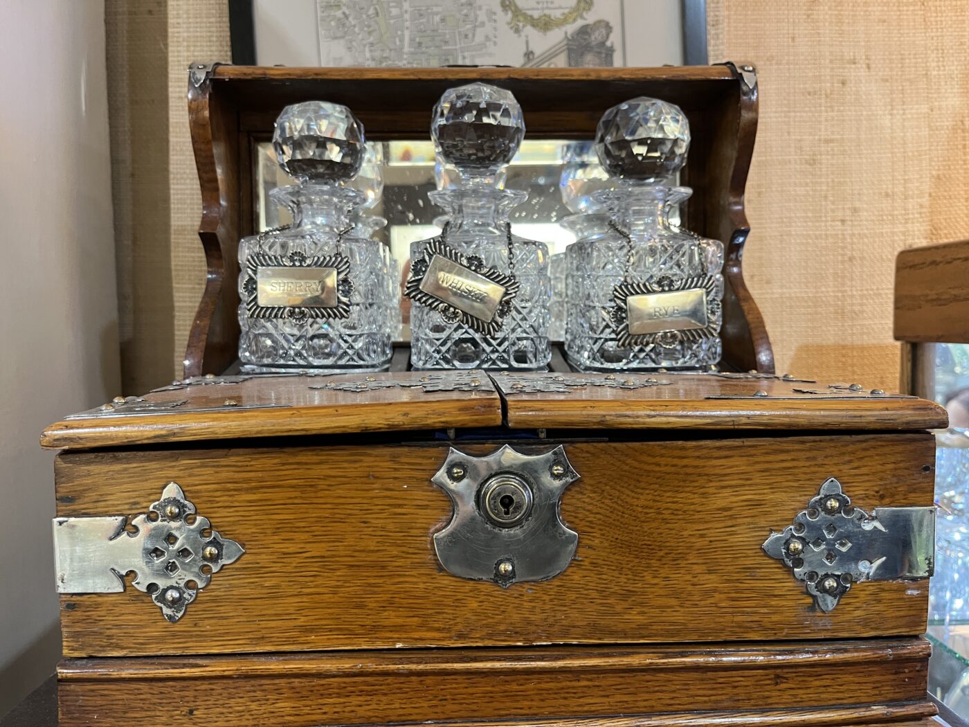 British tantalus from the 1890s, thus named because you can’t remove the bottles from the cabinet without unlocking its safety mechanism: