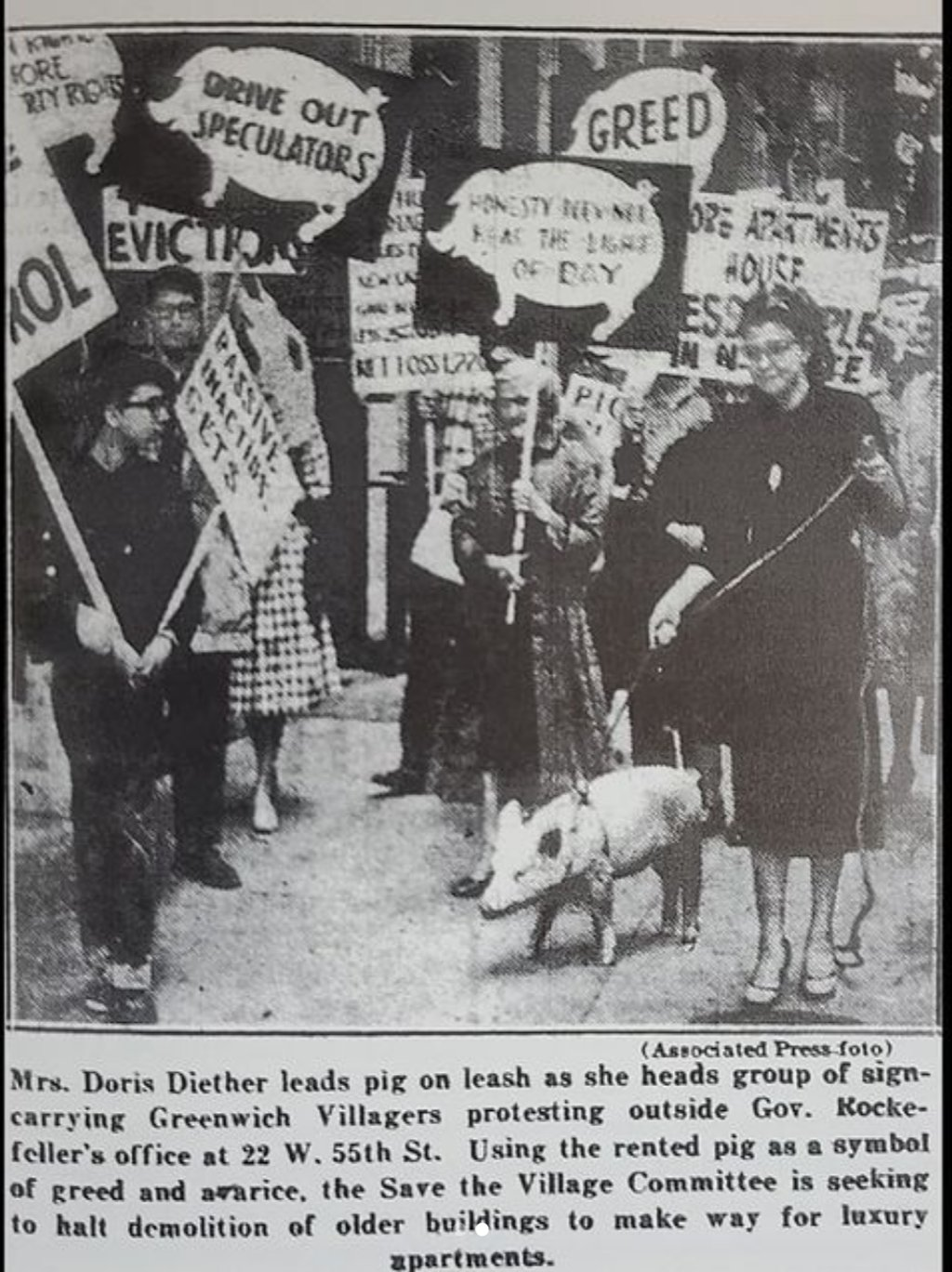 Perhaps her most iconic moment was a 1960 protest at Governor Rockefeller’s office where she rented a live pig to draw attention to the “piggishness” of developers. Doris reminds us that preservation isn’t just about aesthetics; it’s about using the “dry” tools of zoning and law to protect the human scale of a neighborhood. Read more about Doris here or access her full oral history here.