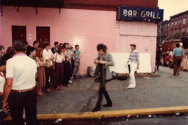 Shot in July 1981 in the East Village, the video avoids soundstages and elaborate sets. Instead, the band roams St. Mark’s Place and First Avenue, capturing the essence of 1980s lower Manhattan. Professional photographer and East Village local resident Peter Bennet captured their early July shoot. At the time, Bennet worked at night as a bartender at various local establishments, and he spent his days photographing the neighborhood around him, including Mick Jagger himself during the filming of Waiting on a Friend.