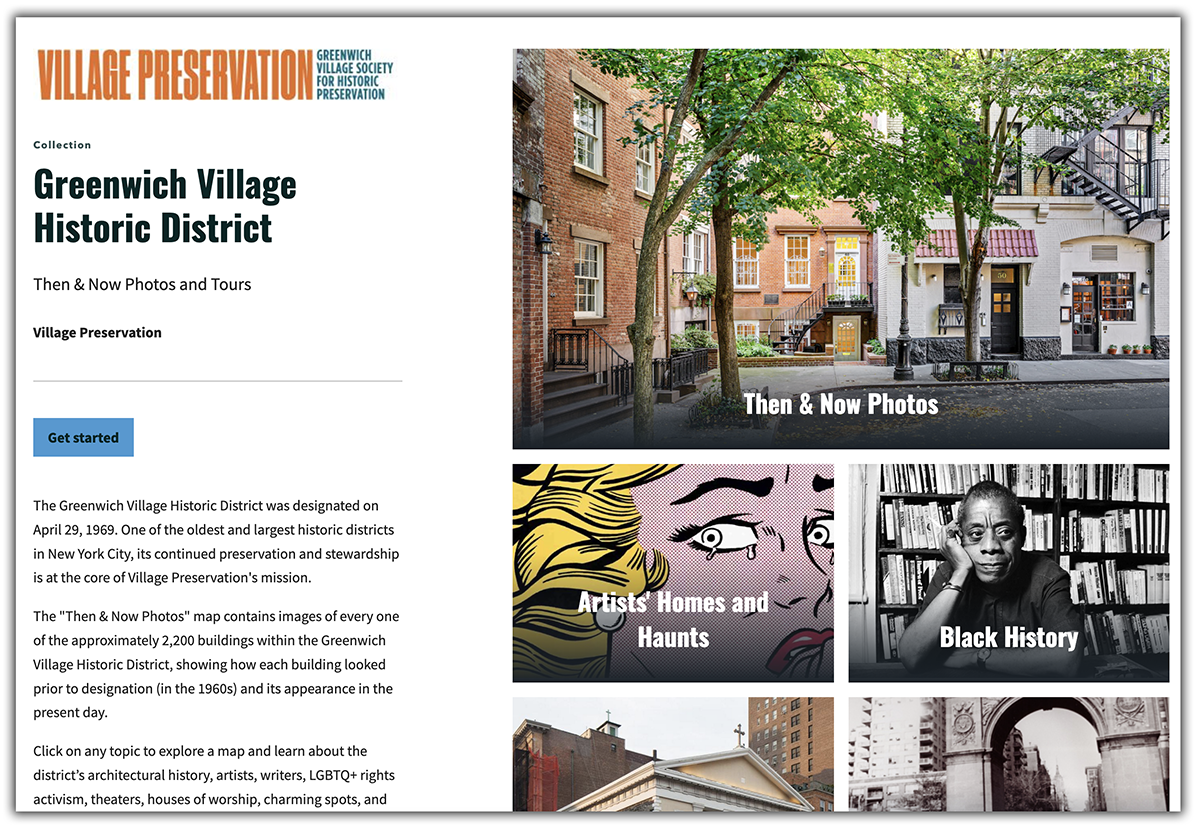 Originally released in 2019 to celebrate the 50th anniversary of the landmark designation of the Greenwich Village Historic District in 1969, the new map utilizes the latest technology to make it more accessible and engaging, while updating imagery and adding information about the neighborhood. You can explore every one of over 2,200 buildings with “Then and Now” photos from the 1960s when landmark designation was first being considered and today. You can also take tours to explore Black History, Artists’ Homes and Haunts, Churches, Places Where the Course of History Changed, Edward Hopper’s Greenwich Village, Great Writers, Jewish History, Immigration Landmarks, LGBTQ+ History, Transformative Women, Theaters and Music Venues, the Most Charming Spots, and many more.
