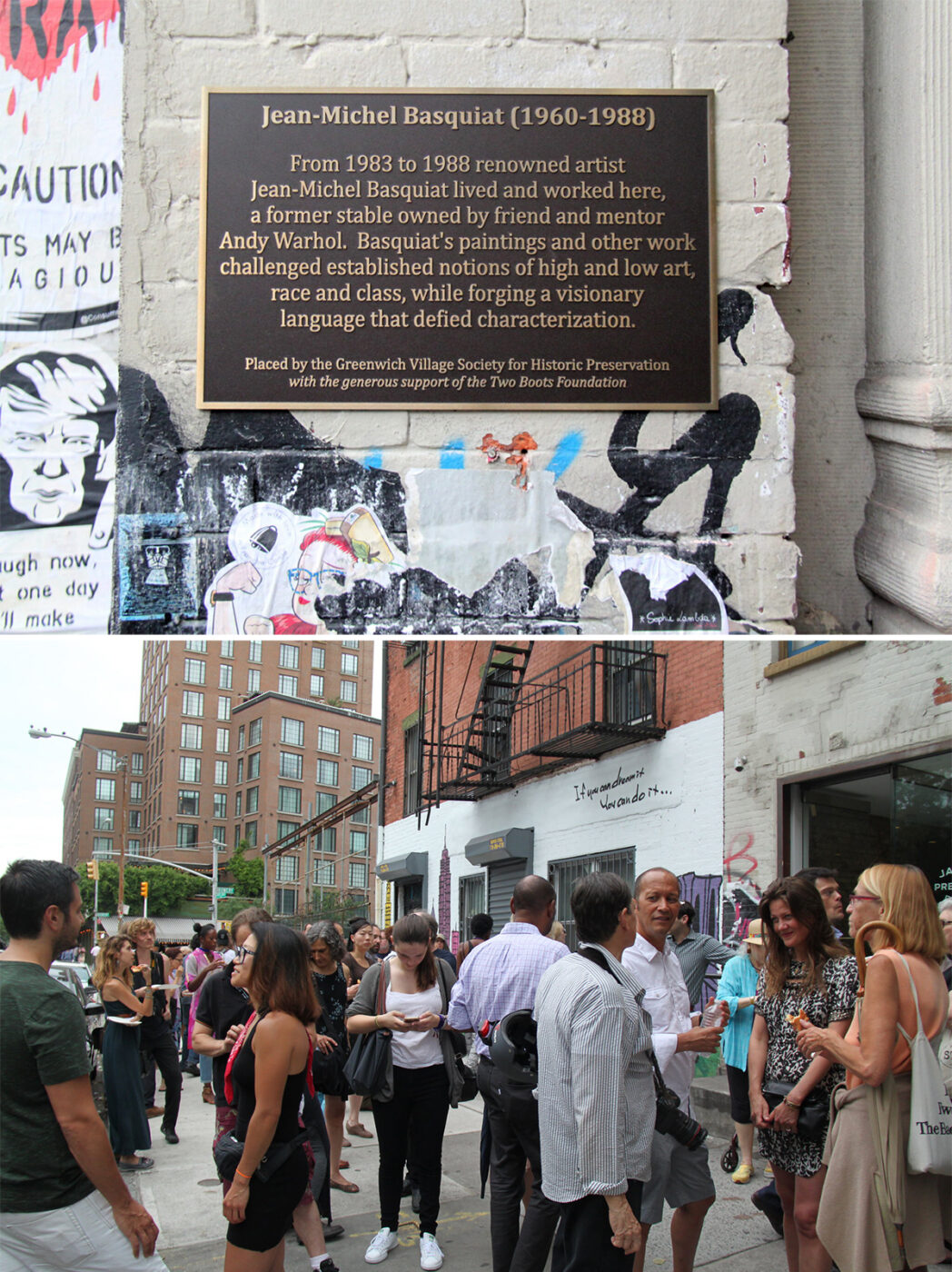 Unfortunately, in just the last year or two there has been a scourge of thefts of these plaques, seemingly motivated by selling the bronze markers for scrap — most recently of the Jean-Michel Basquiat plaque at 57 Great Jones Street. It’s sad that anyone would seek to diminish the good these plaques provide in educating the public about these amazing accomplishments which took place on our streets, likely all for a fraction of the price paid to fabricate and install them. We have worked meticulously with owners to replace those that have been taken.
