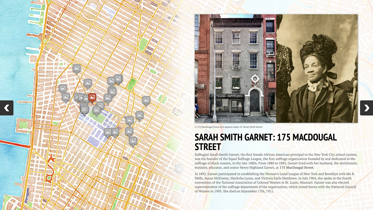 Our expanded and redesigned Civil Rights and Social Justice Map: Among the more than 200 sites in our neighborhood are more than 60 connected to women’s history and the women’s movement, including several new additions regarding women’s history.
