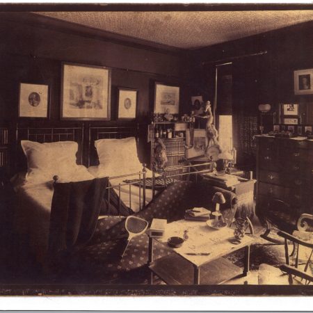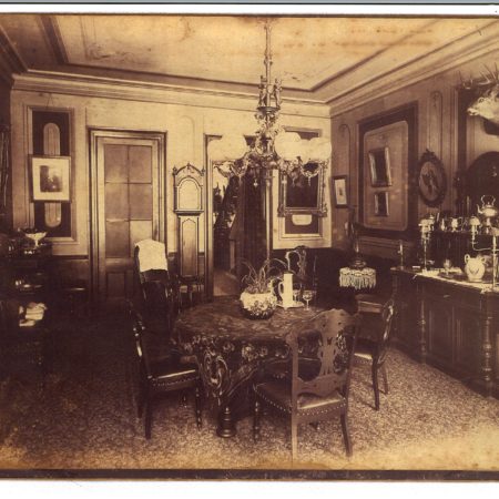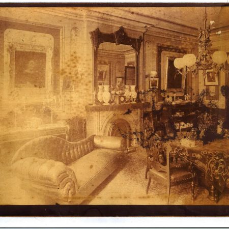 These pictures show the interior of No. 26 and were taken c. 1901 and procured by the residents at the time, the Moir family. Note the high ceilings, ornamental plaster work, original fireplace mantels and over mantel mirrors.