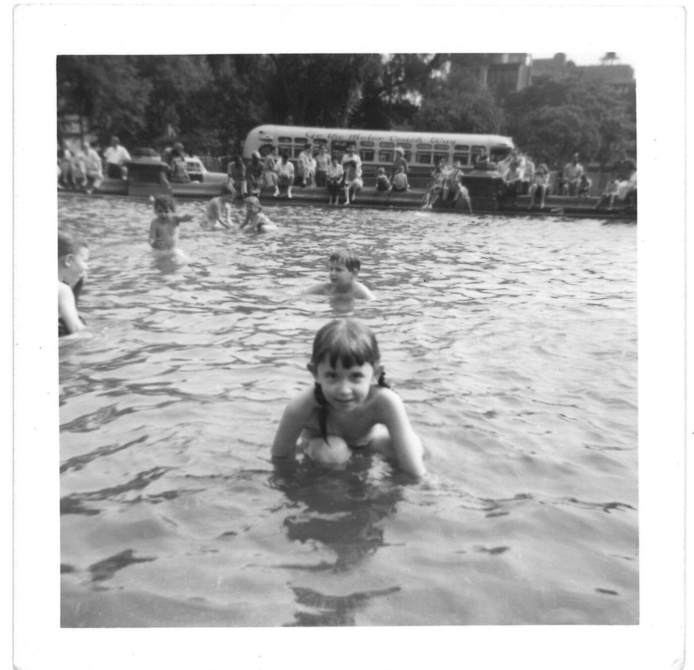 Maia Farish swims in Washington Square Park Fountain when it was Wading Pool, 2