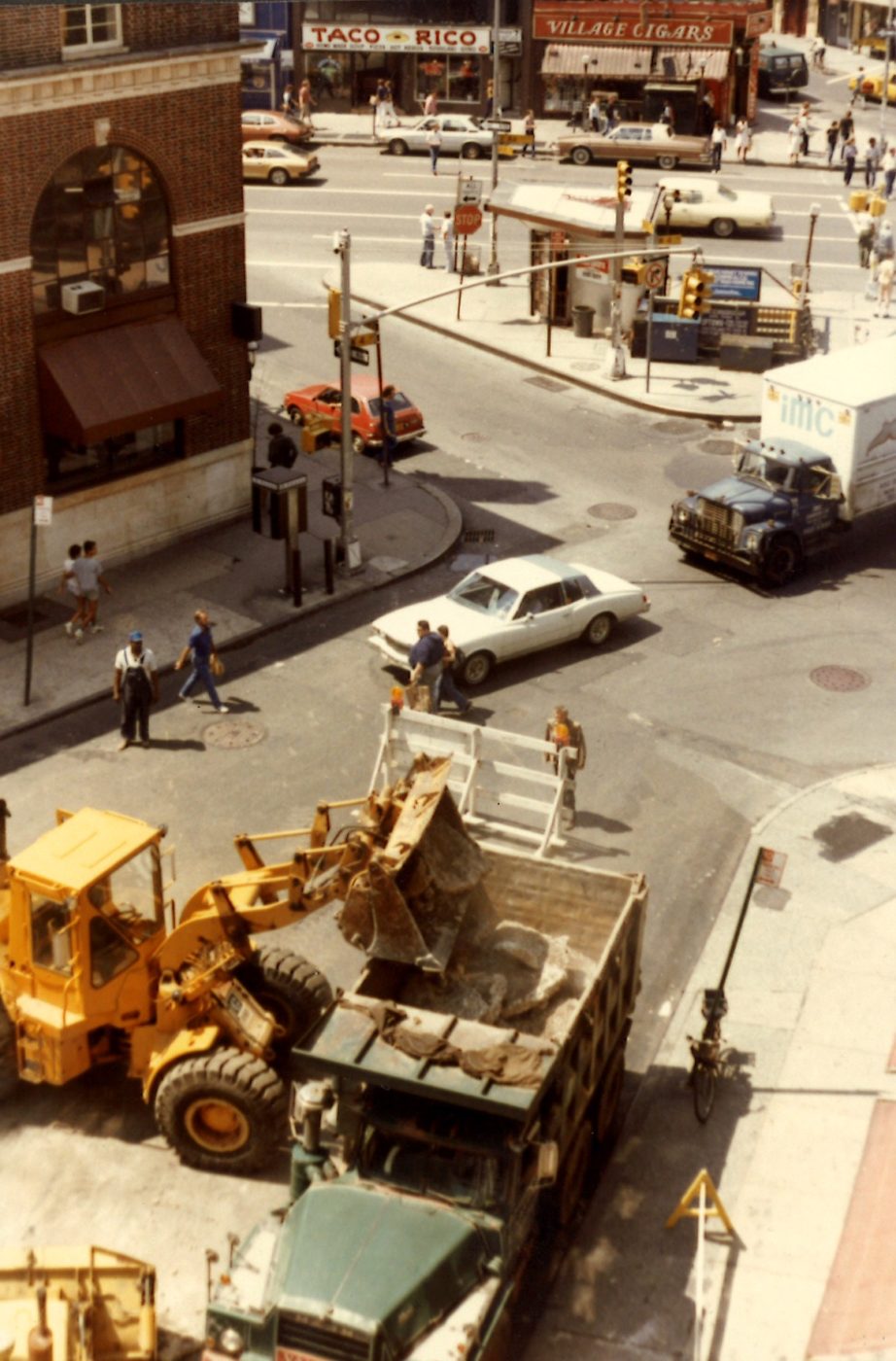 For most of the twentieth century, Sheridan Square served as nothing more than a traffic-safety island.  It wasn’t until 1982 that the area went from a paved triangle to a lovely viewing garden.  The genesis of this project came in July of that year when a group of Sheridan Square neighbors, the Sheridan Square Triangle Association, convinced the Parks Department to turn this plot of land into a garden.  GVSHP’s then-Executive Director, Regina Kellerman, heard about these plans and thought it would be the perfect spot to conduct an archaeological dig since the 4,200 square foot triangle hadn’t been used since the early twentieth century and hadn’t really been touched at all prior to that.  Professional archaeologists contributed their time, and Dr. Anne Marie Cantwell, a  professor at Rutgers, agreed to direct the site excavation and involve her students.  Mostly it was Native American artifacts that were being searched for, many of which were uncovered.  The Sheridan Square Viewing Garden stands today, cared for still by its neighbors, as a reminder of the unity and commitment to history of Greenwich Village.