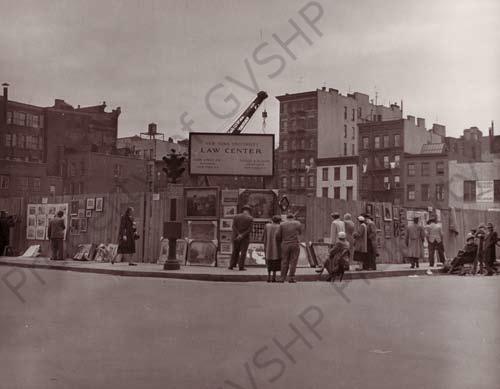 Washington Square Art Show display on the construction fence for the NYU Law Center.