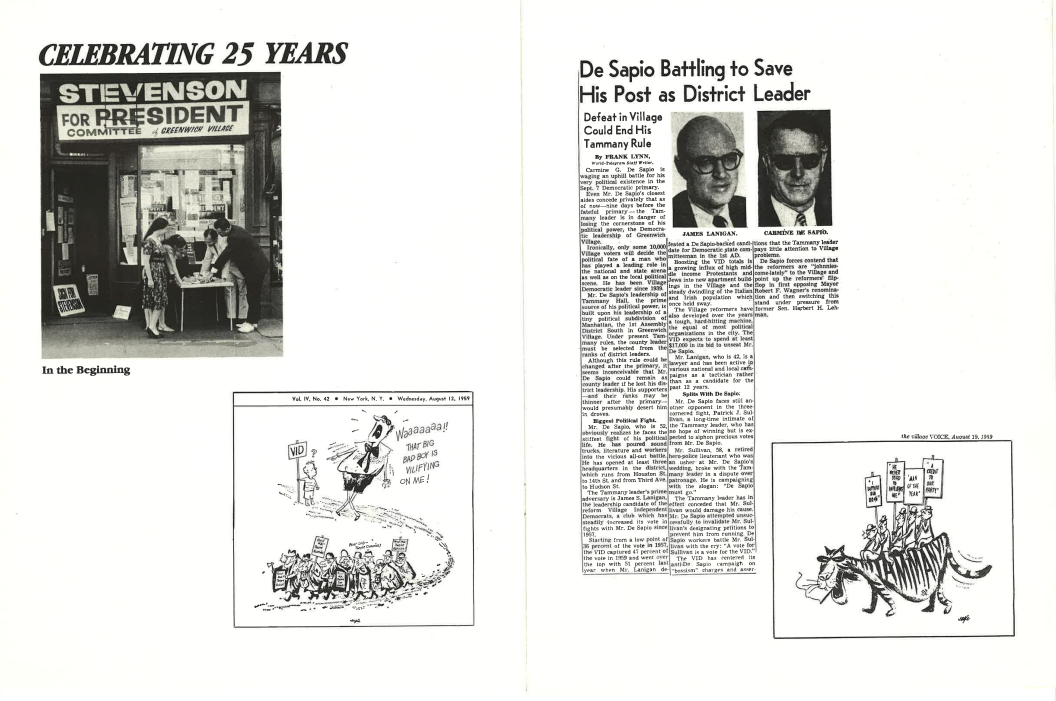 The club voted to support Mario Cuomo over Ed Koch for Mayor, prompting those who supported Koch to split off from VID and form the Village Reform Democratic Club.