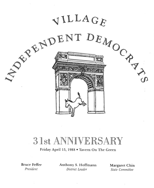 Includes VID constitutional preamble and timeline of VID History with archival materials. Guest of Honor was Tom Downey, United States Congress Member, and there was a special tribute to Robert Hayes, Counsel, Coalition for the Homeless.