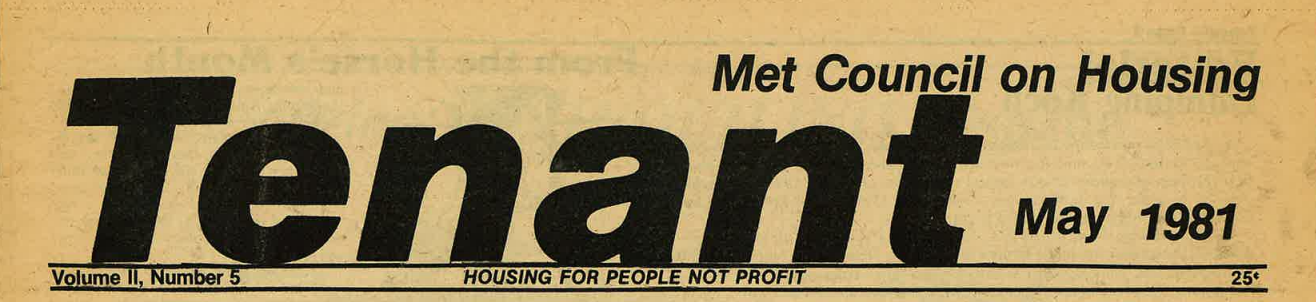 “Tenant”, Met Council on Housing Newspaper, May 1981 Issue. View as PDF.